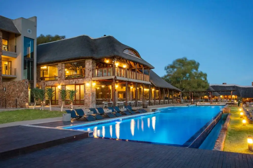 Part of the lodge is a 300 seater restaurant, 35m swimming pool with a pool bar, public lounge, cigar bar, curio shop, tranquil spa, garden labyrinth, children’s playground and conference center.
